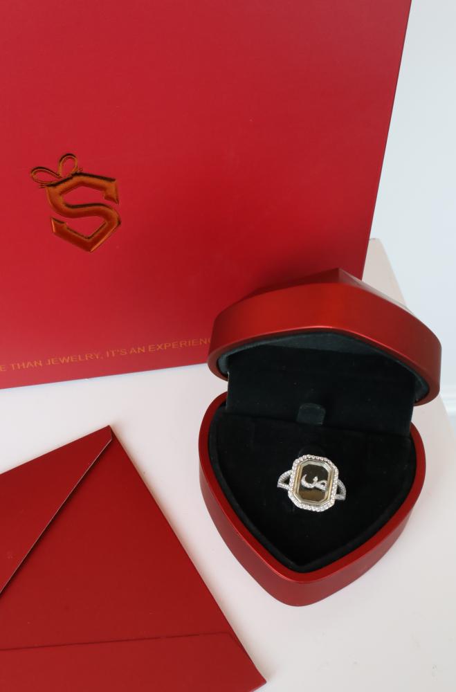 يعتبر الخاتم دليل أنوثه المراءه ويمنحك الخاتم بحرف ( ص ) أطلاله أنيقة وبسيطة , يتعلق هذا الخاتم بمن يرتديه ويزداد اليد الجميلة جمال وجاذبية
